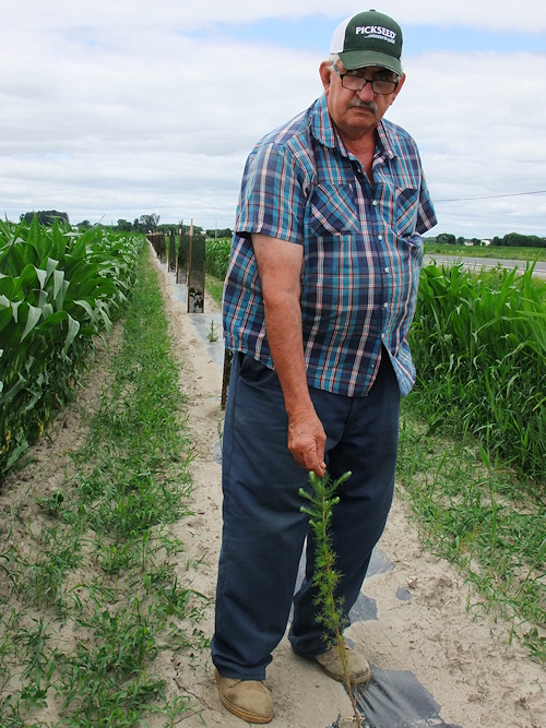 Derrière M.Dufault on aperçoit la haie brise vent située sur sa terre de Sainte-Victoire.