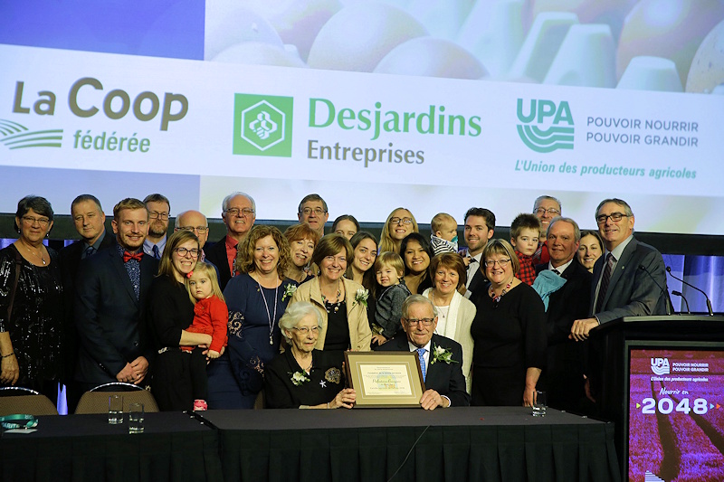 Québec, 5 décembre 2018 – En marge du 94e Congrès général de l’Union des producteurs agricoles, la Fondation de la famille terrienne a remis à la famille Préfontaine-Bourgeois, de Saint-Ours, le titre de Famille agricole 2018. La famille de Solange Préfontaine et Marcel Bourgeois, de la région de la Montérégie, oeuvre en production d’oeufs de consommation, acéricole et de grains.