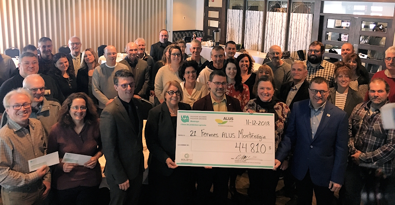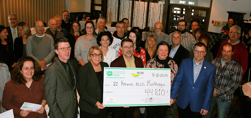 SAINT-HYACINTHE, LE 11 DÉCEMBRE 2018 – Les aménagements réalisés par 21 agriculteurs de la Montérégie sur 12,4 hectares de terres agricoles en 2018 ont permis d’améliorer considérablement l’environnement et la qualité de vie de leurs concitoyens. Les impacts sont bien réels : réduction des odeurs, absorption des polluants dans l’air, réduction des pesticides, des nutriments et des sédiments dans l’eau ainsi qu’une cohabitation plus harmonieuse entre l’agriculture et la faune. Aujourd’hui, la Fédération de l’UPA de la Montérégie et ALUS Canada ont souligné ces efforts en s’engageant à remettre 8 962 $ par année, pour les 5 prochaines années, aux participants du programme ALUS Montérégie, pour un total de 44 810 $.