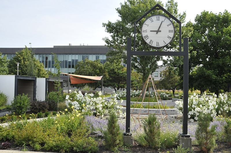 Situé sur le campus de l’ITA, le jardin urbain L’Intemporel propose une expérience à la fois authentique et personnalisée, qui comble les amoureux de l’horticulture et de l’aménagement paysager. Le design du jardin s’harmonise avec les éléments architecturaux environnants, soit les formes géométriques du bâtiment principal et la forme circulaire de l’aile des laboratoires du campus. L’alliance des divers matériaux bruts utilisés pour la réalisation du projet, tels que le bois, le galet d’ardoise, le béton et le fer, apporte une touche industrielle et moderne. La composition des végétaux ornementaux est épurée et leur structure suscite le mouvement, l’harmonie et l’élégance. L’ensemble du jardin L’Intemporel crée un lieu propice aux rencontres, au bien-être et au ressourcement des visiteurs. C’est l’endroit par excellence pour prendre un temps de repos et s’adonner à la contemplation.