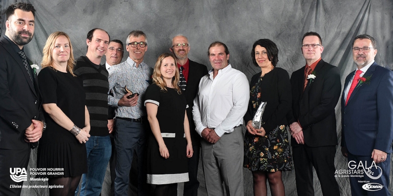Jonathan Tougas (Kubota) Marie-Hélène Trudel et Benoit Laferrière (lauréats) Sylvain Lefebvre (Kemin) Paul Caplette, Andréanne Bergeron, Sylvain Joyal, Patrick Benoit et Yasmina Larbi-Youcef (lauréats) Christian Bisson (Kubota) Christian St-Jacques (UPA Montérégie)