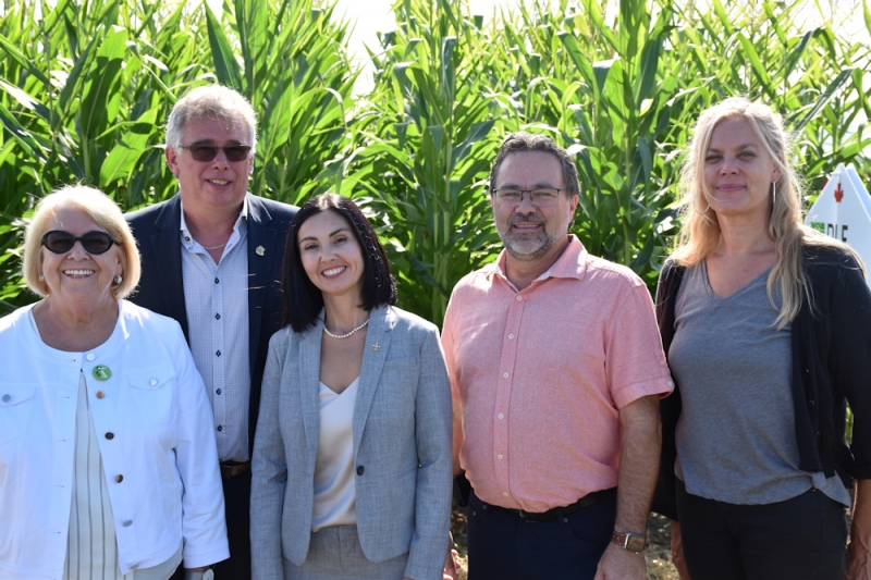 Francine Morin, préfet de la MRC des Maskoutains, Patrick Bousez, président de la Table de concertation des préfets de la Montérégie, Chantal Soucy, députée de Saint-Hyacinthe, Christian St-Jacques, président de la Fédération de l’UPA de la Montérégie, Lynn Bishop, vice-présidente, Finances et opérations, ALUS Canada.