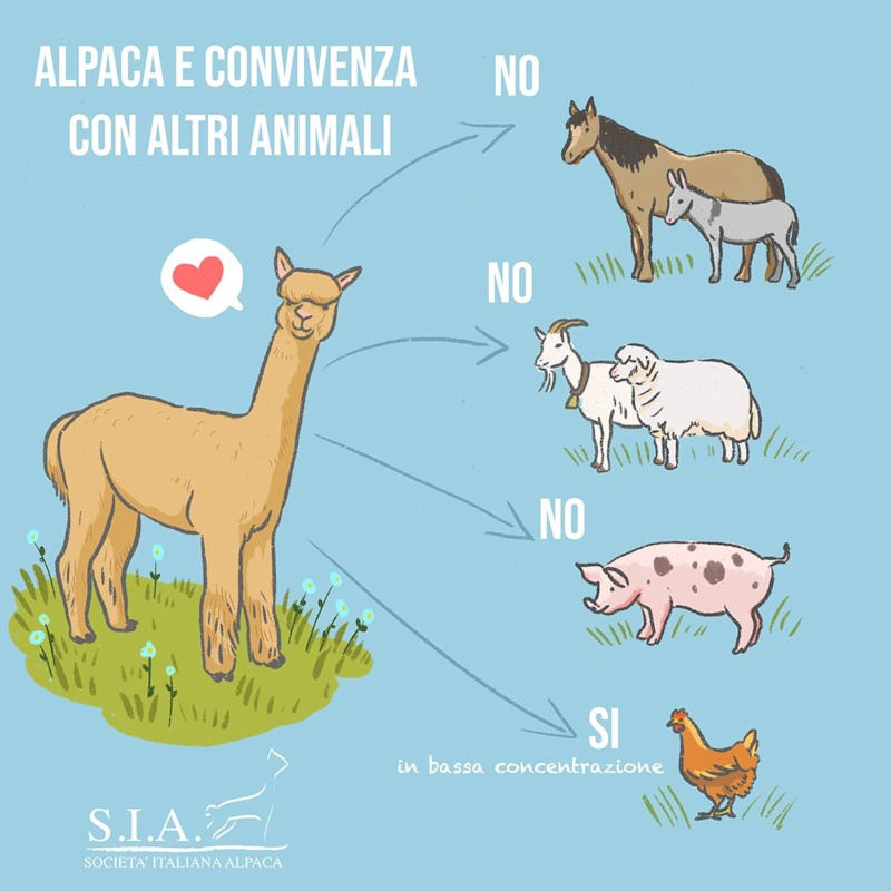 Les cheveux, poneys et ânes sont des animaux excessivement territoriaux et n’apprécient pas les intrus sur leurs territoires, les alpagas étant des animaux curieux, mais n’ayant pas le même langage que les équins un coup d’une ruade est fatal pour un alpaga adulte. Sans dire que leurs besoins alimentaires sont complètement à l’opposé l’un de l’autre.