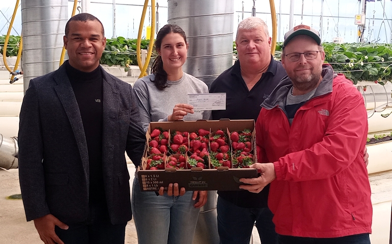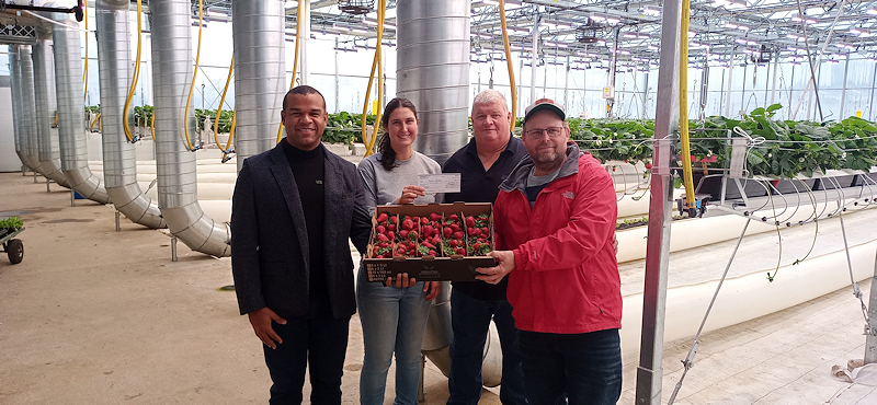 Oscar Cuellar (Richardson), Magalie Rajotte (Les Serres de la Vallière), Alain Beaudin (Commissaire agricole) et Yan Buissière (Président UPA Richelieu-Yamaska)
