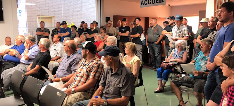 Saint-Hyacinthe, 5 juillet 2018 – Plus d’une cinquantaine d’agricultrices et d’agriculteurs ont assisté à la séance publique du conseil municipal de Contrecœur afin d’exprimer à la mairesse, Maud Allaire, que leurs terres agricoles n’étaient pas à vendre. La Ville devra procéder à l’expropriation de familles si elle s’entête à vouloir développer son pôle logistique en zone verte, comme l’indiquent ses plus récents plans de développement.