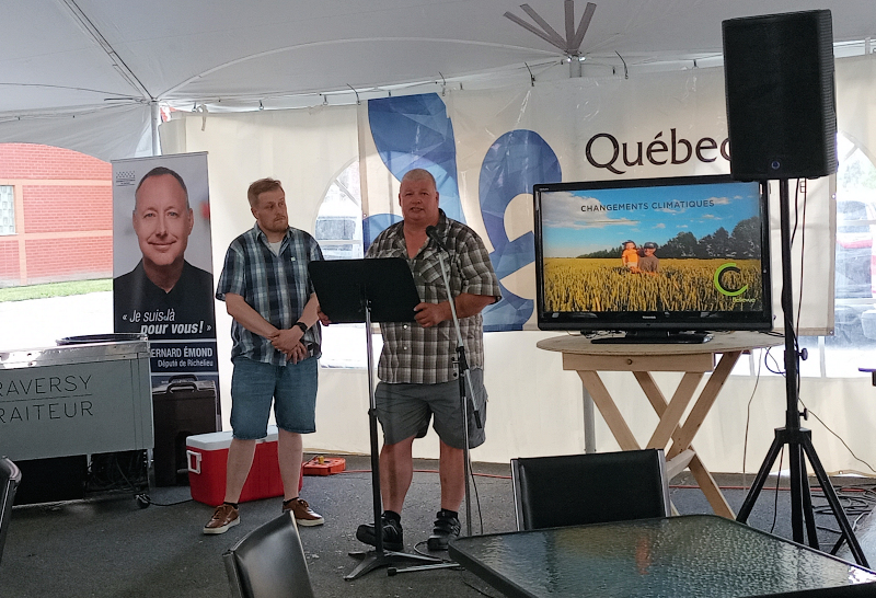 Cette activité servait de lancement aux activités qui ont été présentées durant les autres journées de l’Exposition agricole de Sorel-Tracy sous « Le Chapiteau bioalimentaire ». Chaque jour du reste de la semaine, vous pouviez rencontrer des intervenants pour en apprendre plus et échangés dans les cinq stations : Changements climatiques, Chantier nourricier, Éducation & Savoir, Jeunes Entreprises et Technologies de l’informatique.