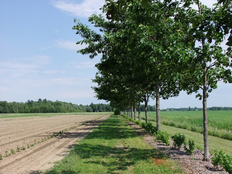 En arrivant à Saint-Robert, il y a une vingtaine d’années, Alain et Isabelle ont procédé à l’implantation d’une haie brise-vent afin de limiter l’érosion éolienne et établir un corridor forestier pour la faune avec des bandes riveraines sur tout le pourtour de leur ferme.